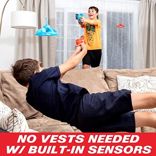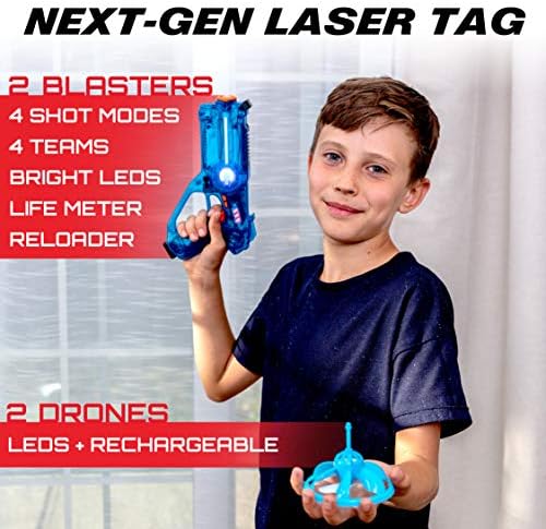 • COMPLETE LASER TAG GUN SET: These laser tag games include 2 laser blasters with child-safe infrared sensors (less than 1mW output) and 2 rechargeable light up hovering target drones